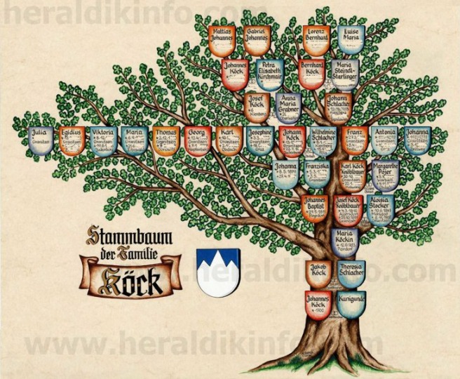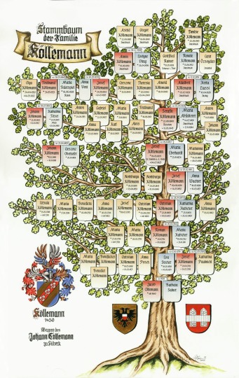 Kalligrafische Elemente sind in Ahnentafeln, Wappenbriefen und Wappen allgegenwärtig. Ein handgeschriebener Stammbaum oder Ahnentafel mit Darstellung des Familienwappens ist eine beeindruckende Dokumentation jeder Familienforschung.